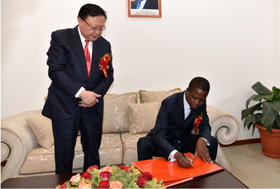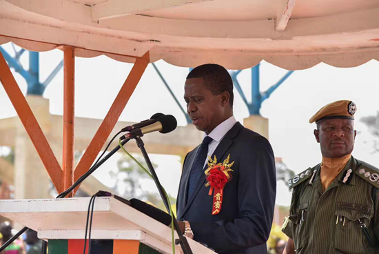 贊比亞總統(tǒng)倫古在儀式上發(fā)表重要講話