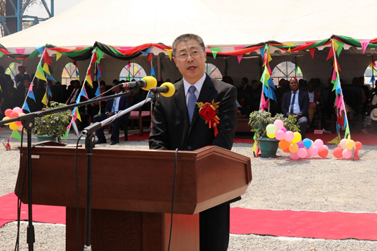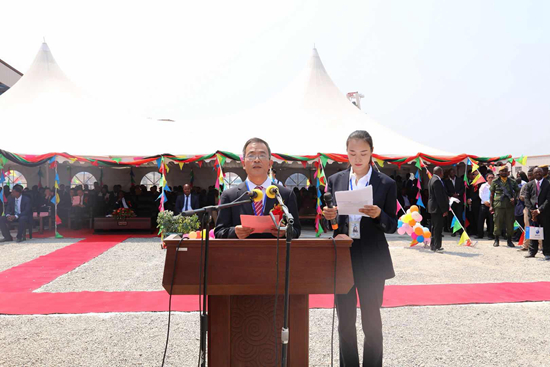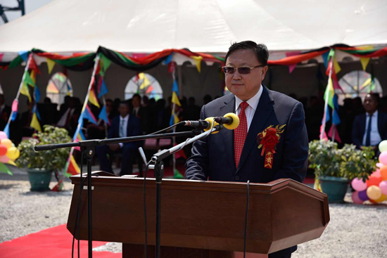中國駐贊比亞大使李杰在儀式上致辭